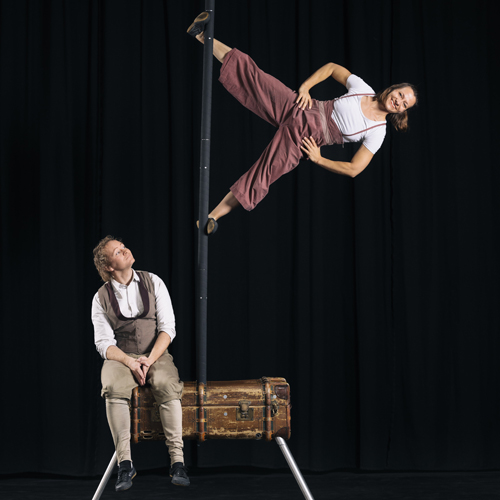 Hierbei hängt das Gelingen von einem, für die damalige Zeit, technischen Wunder ab: dem Grammophon! Erleben Sie die schönen und absurden Seiten des Zusammenlebens mit akrobatischen Höhepunkten am Boden und am Chinesischen Mast, vielen skurrilen Überraschungen und mit einem Hauch von Poesie auf rotem Teppich.